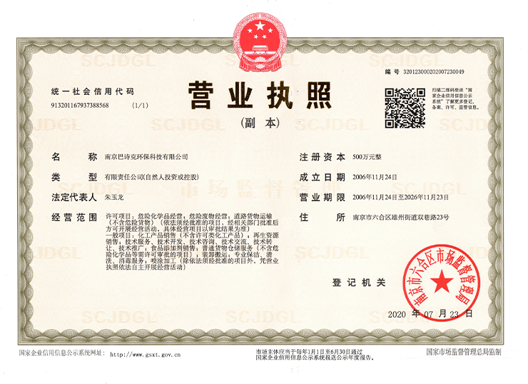 南京巴詩克環(huán)保科技有限公司,座落在江蘇省南京市化學工業(yè)園區(qū)紅山精細化工園(六合區(qū)),交通便利,工業(yè)發(fā)達,環(huán)境優(yōu)美。公司注冊資金500萬元,占地面積20多畝。項目總投資5000萬元,建成廠房及附屬設施9000平方米,新購置設備224臺套。項目全部建成投產(chǎn)后可實現(xiàn)年銷售收入6500萬元、利稅6···